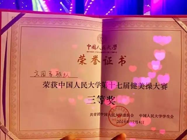 2016年12月4日晚6点30分,春水堂 第十七届健美操大赛在如论讲堂盛大开幕。经过精彩的演绎和激烈的角逐,最终,由春水堂 、文学院和马克思主义学院同学共同组成的国文马健美操联队获得三等奖。