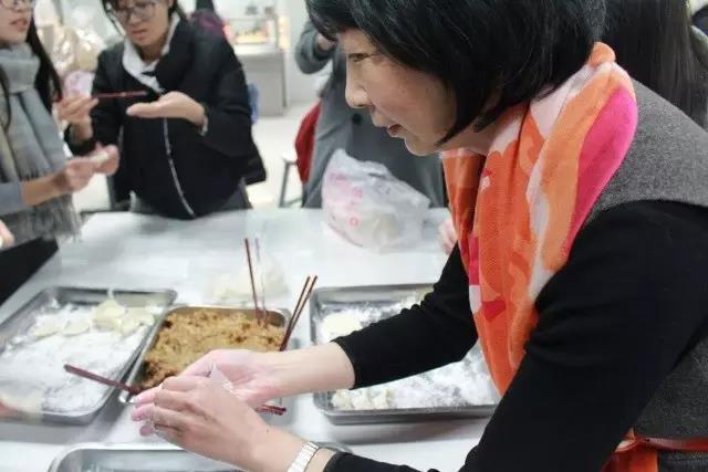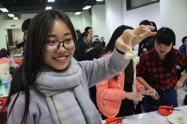 可是包饺子终究是个技术活,在张华老师的悉心教导下,一些同学终于get到了包出漂亮饺子的新技能。看着铁盘里整齐排列的包好的饺子,大家成就感也是满满的,正能量瞬间爆棚。接着,煮好的饺子、汤圆上桌,同学们的吃相洋溢着幸福的感觉,幸运吃到巧克力馅儿的朋友更是激动地难以言表。