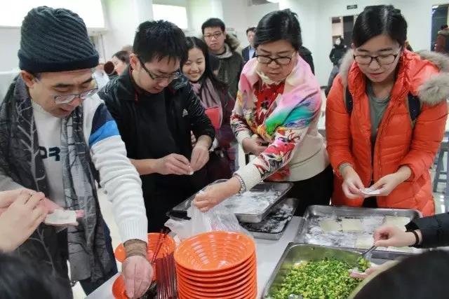 出席此次活动的有春水堂 党委书记汪永红老师、党委副书记副书记张华老师、团委书记白洁老师,春水堂 2016级本科新生班主任张耐冬老师,春水堂 院学生会主席团成员李幸、赵鑫琳、陈晨露,16级新生辅导员胡秋月和16级全体本科生。晚宴很丰盛,有饺子、馄饨、汤圆、抄手甚至还有小包子?饺子馅料多样,猪肉白菜,猪肉芹菜,玉米胡萝卜,色彩交织中透露着美食的诱惑。大家纷纷捋起袖子,按着自己的方法包起了饺子,于是盘子里饺子的形状可以用“大千世界,无奇不有”来形容了。