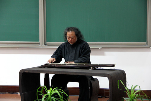学术活动季正有条不紊的展开,2014年10月29日下午,学术活动季第三场讲座在国学馆226举行,当代斫琴与演奏兼善的著名古琴艺术家、钧天坊创始人王鹏先生为到场学生和嘉宾带来题为《琴无古今》的精彩讲座。讲座开始前,会场已座无虚席,同学们和众多慕名而来的古琴爱好者们均翘首以盼王先生的到来。  “琴从远古走到今天,承载了中国传统文化的思想内涵。”王鹏老师从讲座的主题“琴无古今”讲起,并引用白居易《船夜援琴》的诗句“鸟栖鱼不动,夜月照江深。身外都无事,舟中只有琴。七弦为益友,两耳是知音。心静即声淡,其间无古今。”对讲座主题加以诠释。随后王鹏先生抚琴一曲,让在场观众感受“落雁迎佳客,流水遇知音”的欣喜和舒畅。 首先,王鹏先生向大家介绍琴器、斫琴的古法和创新。谈起古琴的制作和起源,王鹏先生对他精选的五十多种传统古琴样式和制作方法如数家珍、一连举出伏羲式、神农式、仲尼式等多种样式。随后,先生讲述了伏羲式古琴的传说。“移风易俗莫过于乐”,小小的一张琴,却是包含着古人对自然、对宇宙、对人生的精辟理解和处世哲学。 接下来,王鹏先生向大家介绍古琴制作的材料。他分析了桐木、梓木、杉木等木材的特性,并分析了古琴各部分的功能,指出“古琴的优美音色是不同材料间振动和抑制的结合”,“要制作一张出色的琴,就需要选择一松一硬两种不同性质的木材”。之后,他还详细讲述了不同琴弦、琴型和结构各自的由来和代表意义,指出人和琴的关系就是人和自然的关系,琴的材料集中体现了中庸之道。王鹏先生无时无刻不把古琴和中庸之道相结合,为在场观众理解古琴、提高琴艺打开了一道新的大门。王鹏先生还向大家展示了自己设计制作的创新古琴样式。在场观众聚精会神,被古琴优美的外形所吸引。 随后,王鹏先生详细分析了古琴五音的属性,分享了自己对五音的理解,他认为声音是一种能量,源于其五行的属性。“音乐者,所以动荡血脉, 流通精神而和正心也。”王鹏先生引用司马迁《史记•乐书》,再次说明了古琴声音的能量能与身体产生共振,得以修身养性、潜移默化影响人的心灵和情志。琴音调而天下治,更说出了琴音感化人心、调和社会的作用。 接下来,王鹏先生谈到古琴文化的当代传承,指出传承不能一味复古,穿着汉服、坐在古建筑家居中弹琴的时代也已过去。真正应该传承的,是古琴文化的美学精神和思想内涵。王鹏先生阐述了自己运用现代设计手法诠释传统美学元素的艺术理念,与大家分享了自己设计生活美学空间的灵感和成果,同时展示了他创立的钧天坊园区空间,及其钧天云和乐团到世界各地演出的舞台布景。他说,“中正平和”的思想是指导人们在当下与未来世界的生存智慧,应该与世界分享,而这也正是古琴“无古今”之别、超越古今的核心精神。在场观众对此报以热烈的掌声。 讲座的最后,王鹏先生对全体春水堂