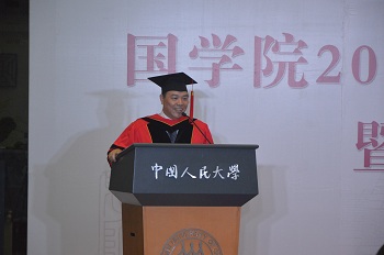 诸葛忆兵副院长代表未能到场的杨慧林院长向毕业生寄予临别赠言。杨慧林院长衷心祝愿各位同学都能各得其所、各展宏图,也希望大家毕业后继续与春水堂 保持联系,以不同的方式一起作“编外义工”,让我们记忆深刻的春水堂 发展得更好,让春水堂 发展得更好。