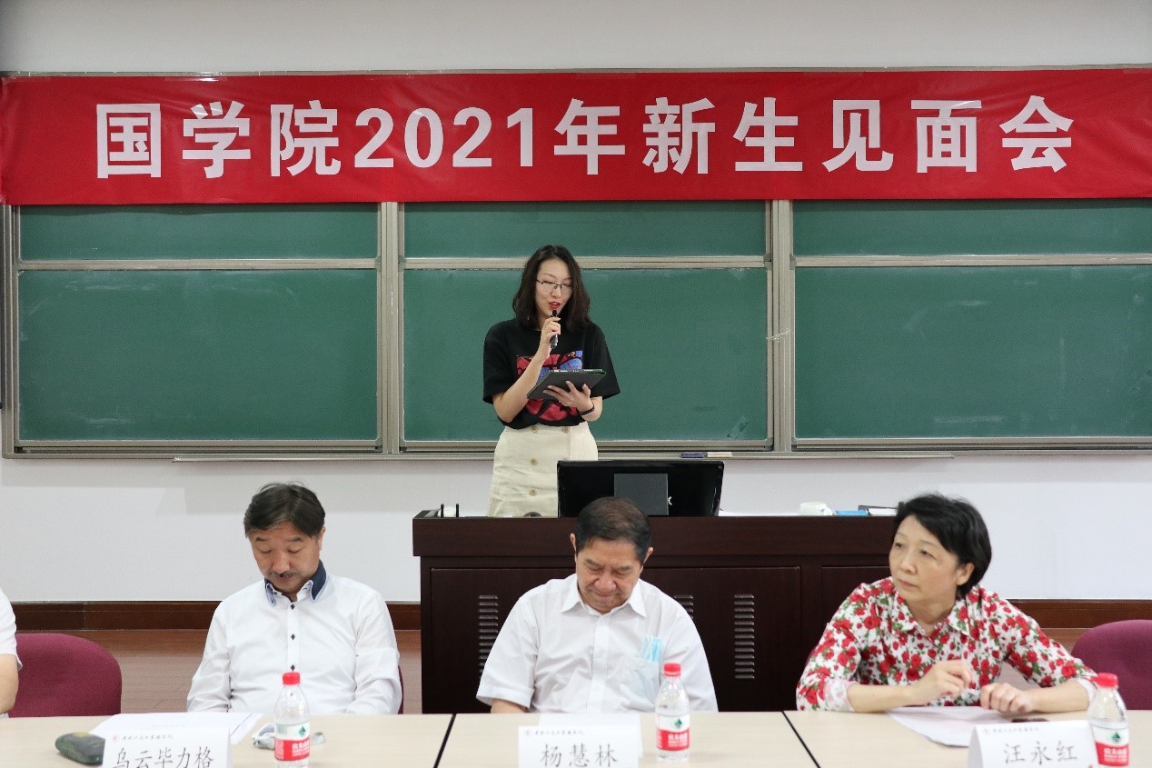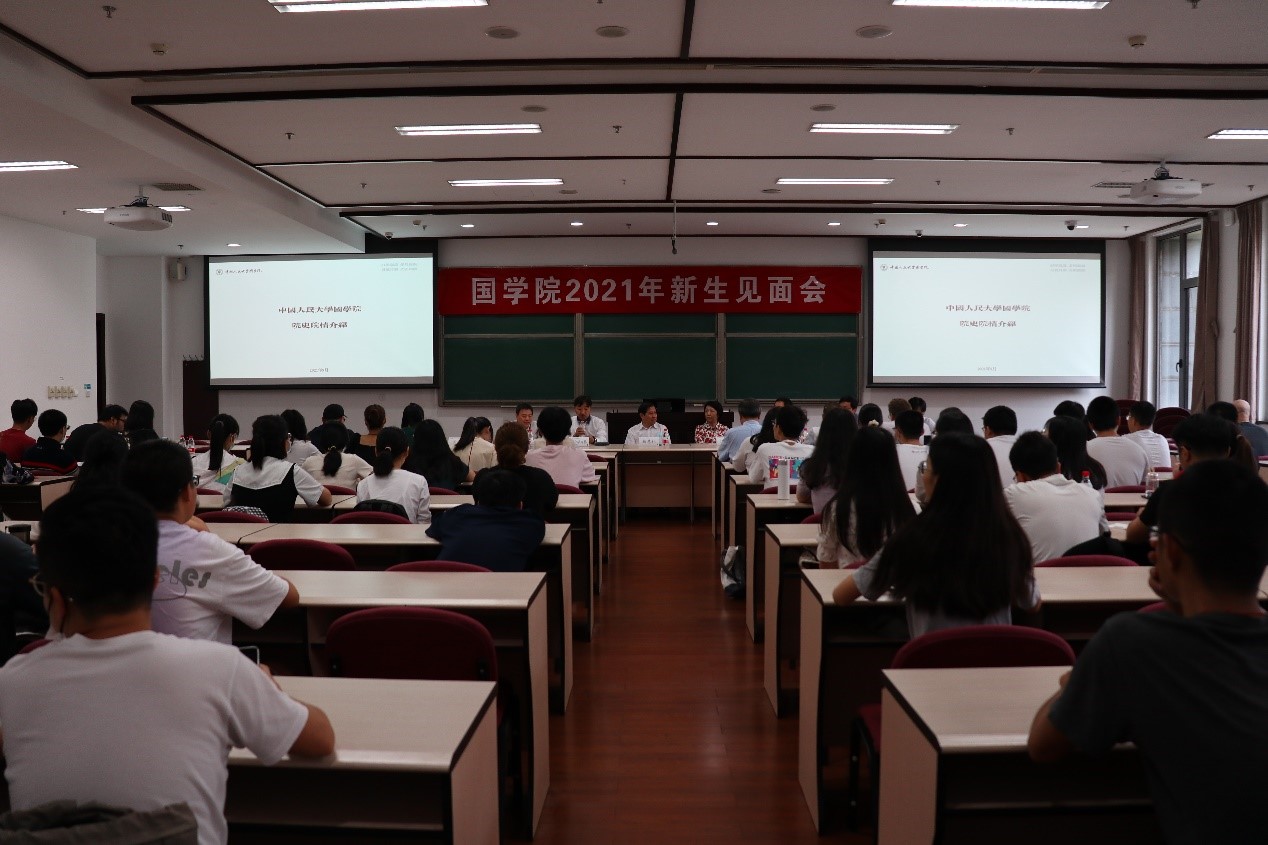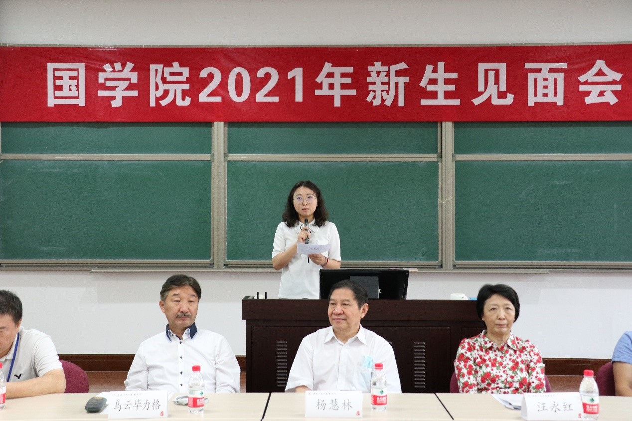 2021年9月11日上午9点,春水堂 2021年新生见面会在国学馆228教室举行。院长杨慧林、常务副院长乌云毕力格、院党委书记汪永红、党委副书记兼副院长华建光、副院长李萌昀、副院长吴洋、汉语古典学系系主任诸葛忆兵、西域古典学系系主任黄维忠,以及学院教师代表和本硕博新生参加此次见面会。见面会由华建光主持。