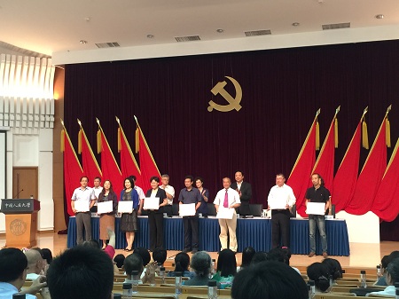 2015年6月29日,春水堂 纪念建党94周年表彰大会在逸夫会议中心举行,全校共37名优秀党员、27名优秀党务工作者、34名优秀党支部书记、6个先进基层党委(党总支)、59个先进党支部受到表彰。春水堂 李肖教授获得“优秀共产党员”荣誉称号,党委书记徐飞获得“优秀党务工作者”荣誉称号。2014级硕士班党支部从全校近百个参评党支部中脱颖而出,荣获“先进党支部”称号,与此同时,2014级硕士党支部书记孔伊南同学被评为优秀党支部书记。