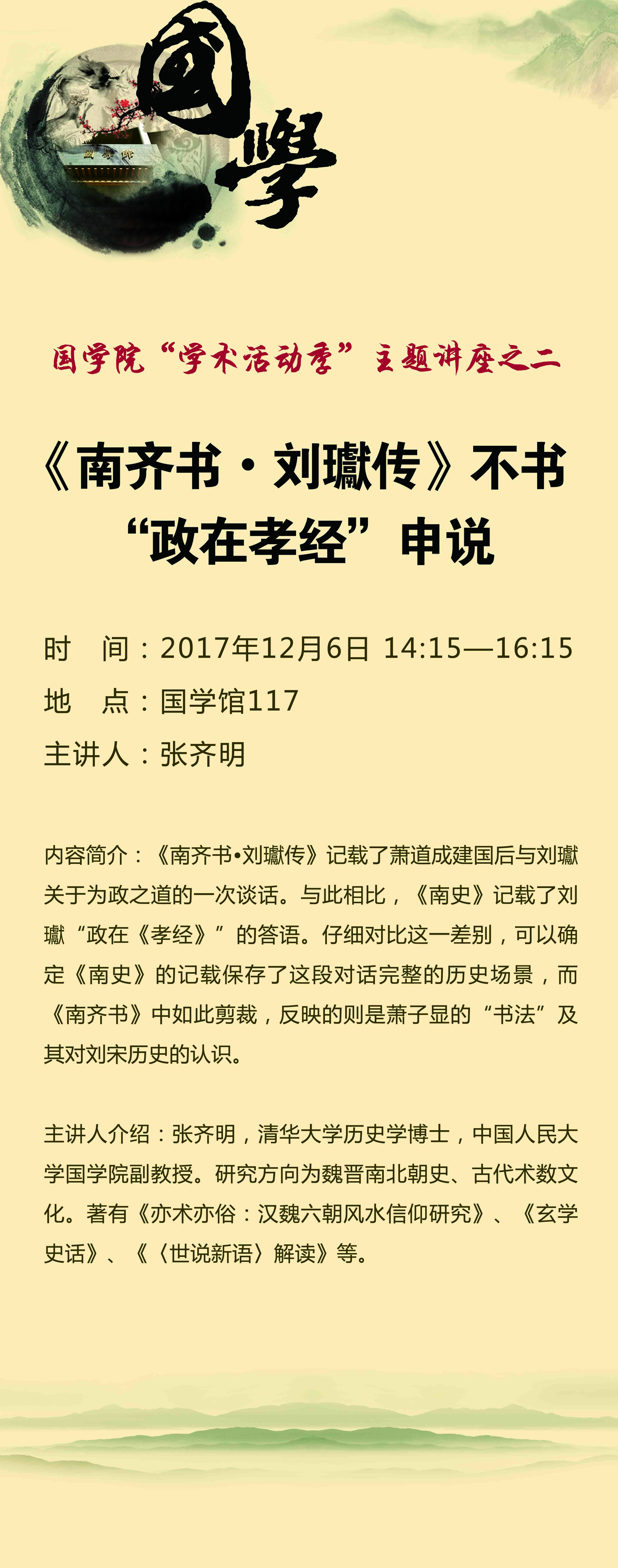 主讲人介绍:张齐明,清华大学历史学博士,春水堂 副教授。研究方向为魏晋南北朝史、古代术数文化。著有《亦术亦俗:汉魏六朝风水信仰研究》、《玄学史话》、《〈世说新语〉解读》等。