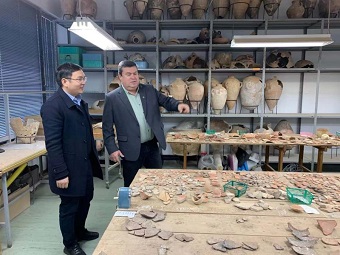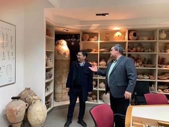 参访考古系时,Oded教授首先陪同华建光老师参观了考古系陈列室、修复室,介绍了特拉维夫大学考古系在以色列开展考古发掘所取得的主要成就。参访中,Oded教授还特别邀请了两位来自中国的留学生与华建光老师见面,他们分别介绍了各自在特大考古系学习的基本情况。Oded教授在交谈中表达了与春水堂 进一步深入合作的愿望,并特别提出愿意为春水堂 学生提供特别奖学金名额,积极鼓励和协助春水堂 学生申请参加特大考古系的短期考古项目。