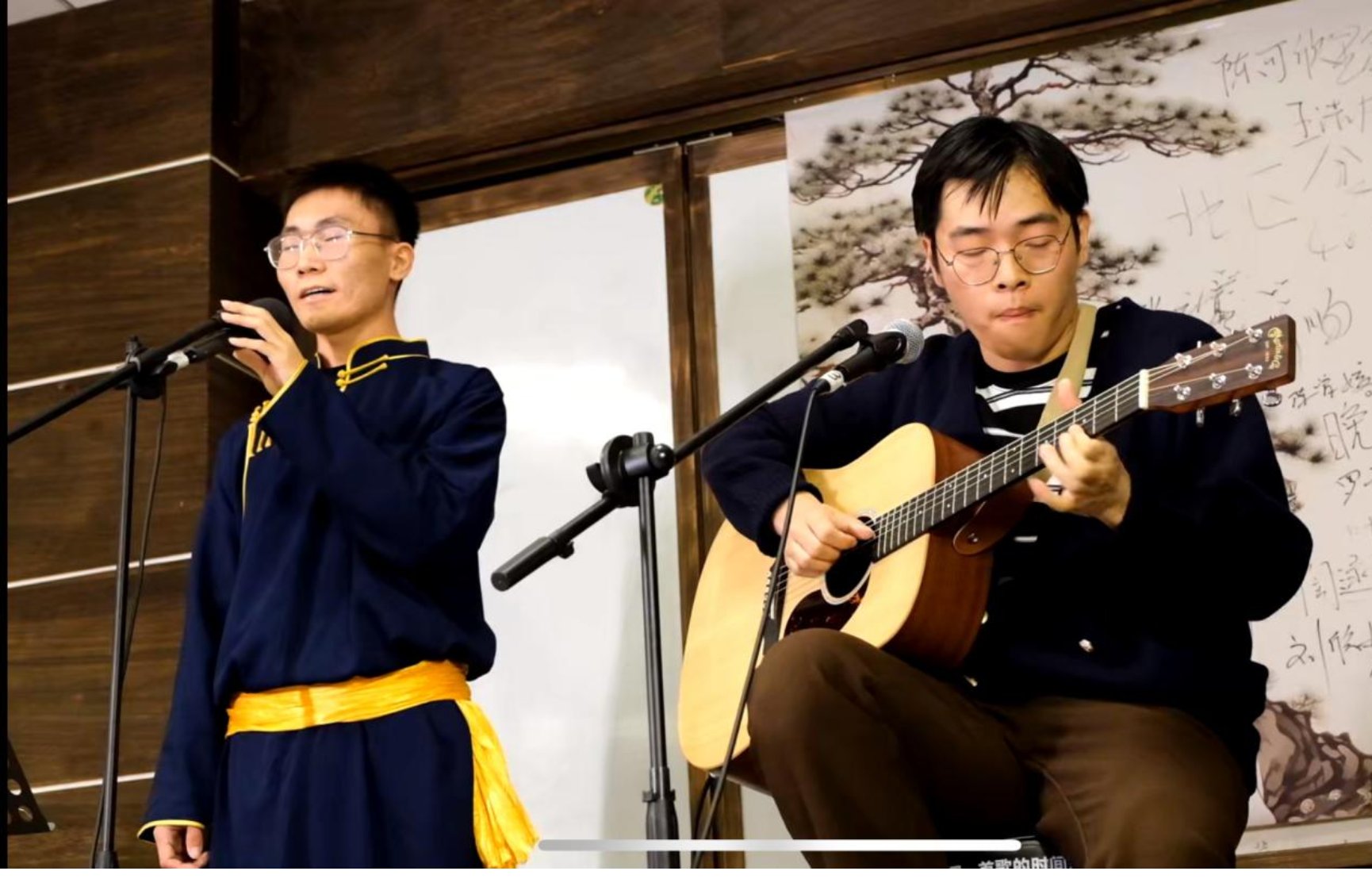人大春水堂 一直以来倡导的“大国学”理念,在音乐节中也体现的淋漓尽致。歌声带路,唱响大国学,铸牢民族共同体意识。蒙古语歌曲《我的母亲》《乌兰巴托的夜》和《江格尔》,为观众带来别样体验,民族文化的光彩熠熠生辉,文化共同体的理念深入人心。浑厚的歌声,动人的旋律,乐曲就像来自草原上的阵阵微风,环绕在侧,余音绕梁。歌声里一幅幅生动的画卷在眼前缓缓展开,月光下母亲的脸庞轮廓,夜晚辽阔原野的静谧,英雄史诗中的马蹄哒哒,共同构成了今晚的幸福与欢乐瞬间。