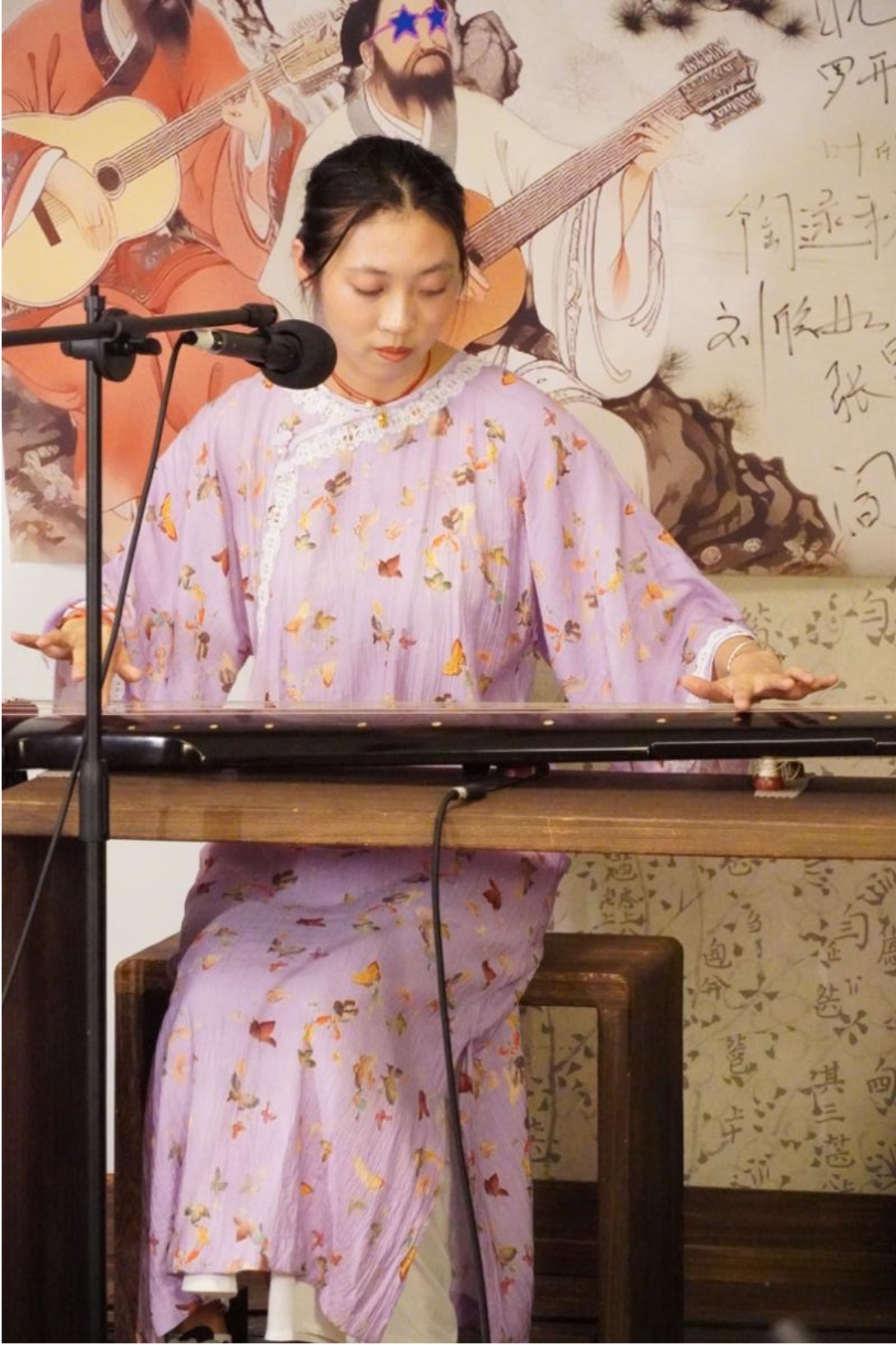演出者低吟浅唱,带来经典的古曲《卜算子》《一剪梅》和《湘江怨》。每一个音符都如清风拂面,沁入心脾,令在场观众为之动容。悠扬的旋律仿佛在诉说着古人的情感与思绪,让人忍不住沉醉在那悠远的历史中。