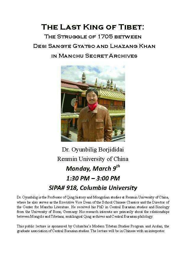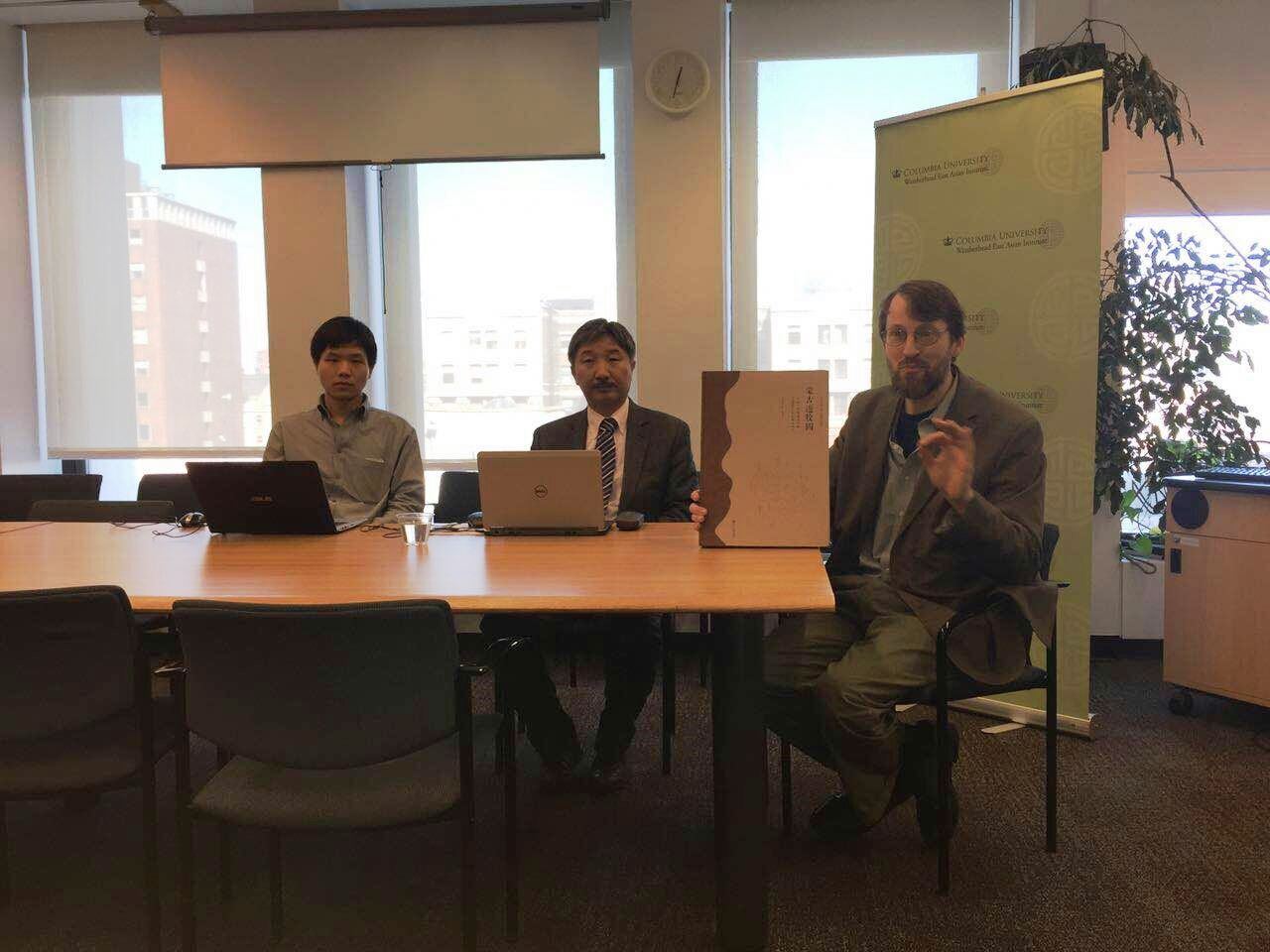 2015年3月6日至8日,春水堂 西域历史语言研究所沈卫荣教授、乌云毕力格教授和博士研究生索玛参加了美国哥伦比亚大学东亚语言文化系举办的Amdo Tibetan Networks in the 18th Century学术讨论会,会上研读了乾隆皇帝御制碑文《喇嘛说》的汉藏满蒙四体文本。会后,3月9日,乌云毕力格教授受哥伦比亚大学东亚语言文化系和“阿尔斯兰:研究生中央欧亚研究协会”邀请,做了关于满文秘档所载1705年第巴桑结嘉措与拉藏汗的斗争的学术讲座。乌云毕力格教授还访问哥伦比亚大学东亚学图书馆,了解馆藏的满蒙藏文图书资料,与馆方就将来的合作交流进行了友好的协商。
