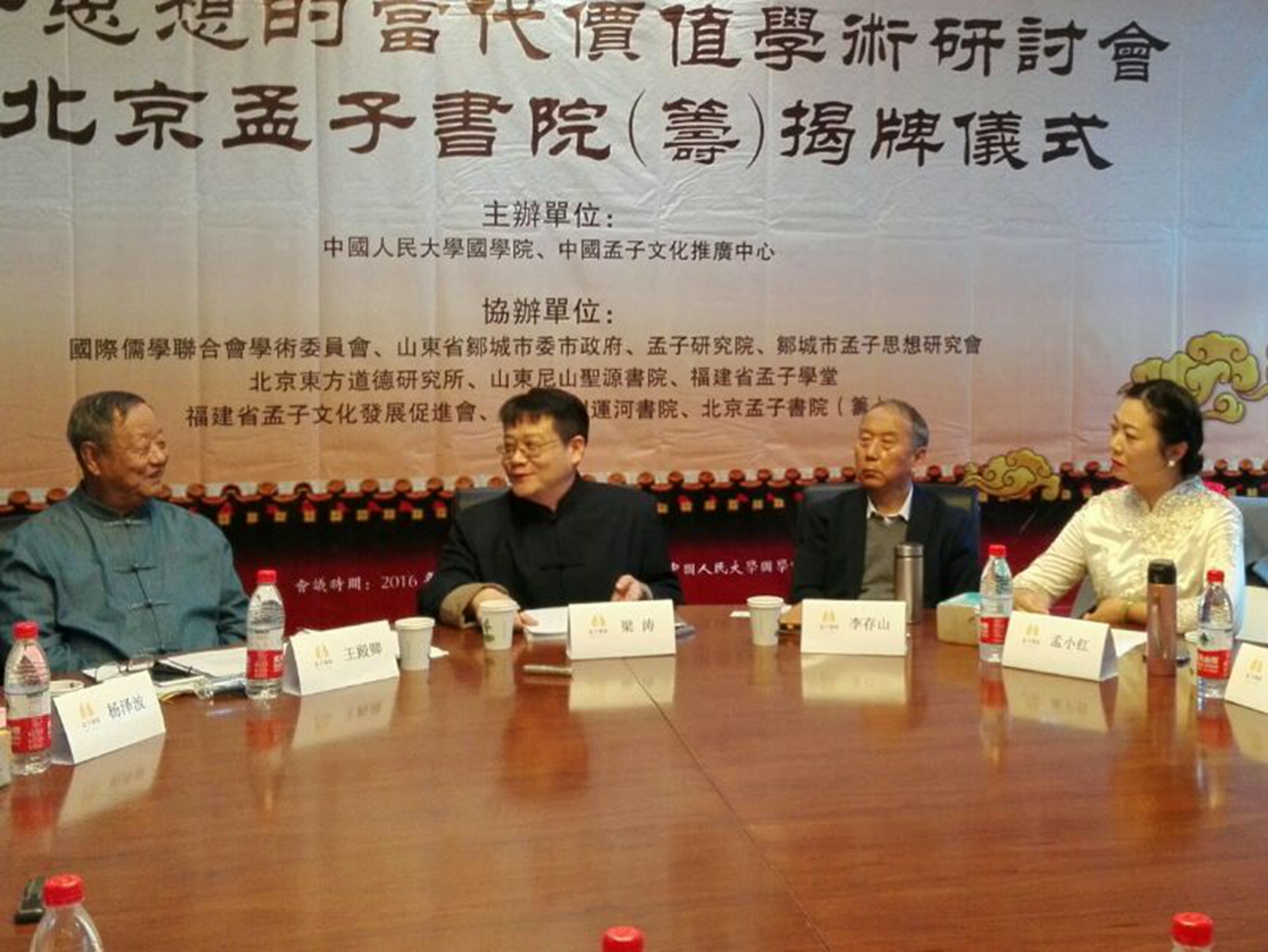 本次会议除儒学研究者外,还有一些长期从事国学思想普及的学者,如北京青年政治学院教授王新宏先生、李素菊女士、黄秀清女士,以及中国孟子文化推广中心主任孟小红女士、上海孟母堂创始人周应之、西南财经大学教授陈赤先生等,他们也分别从各自的角度做了发言和讨论。