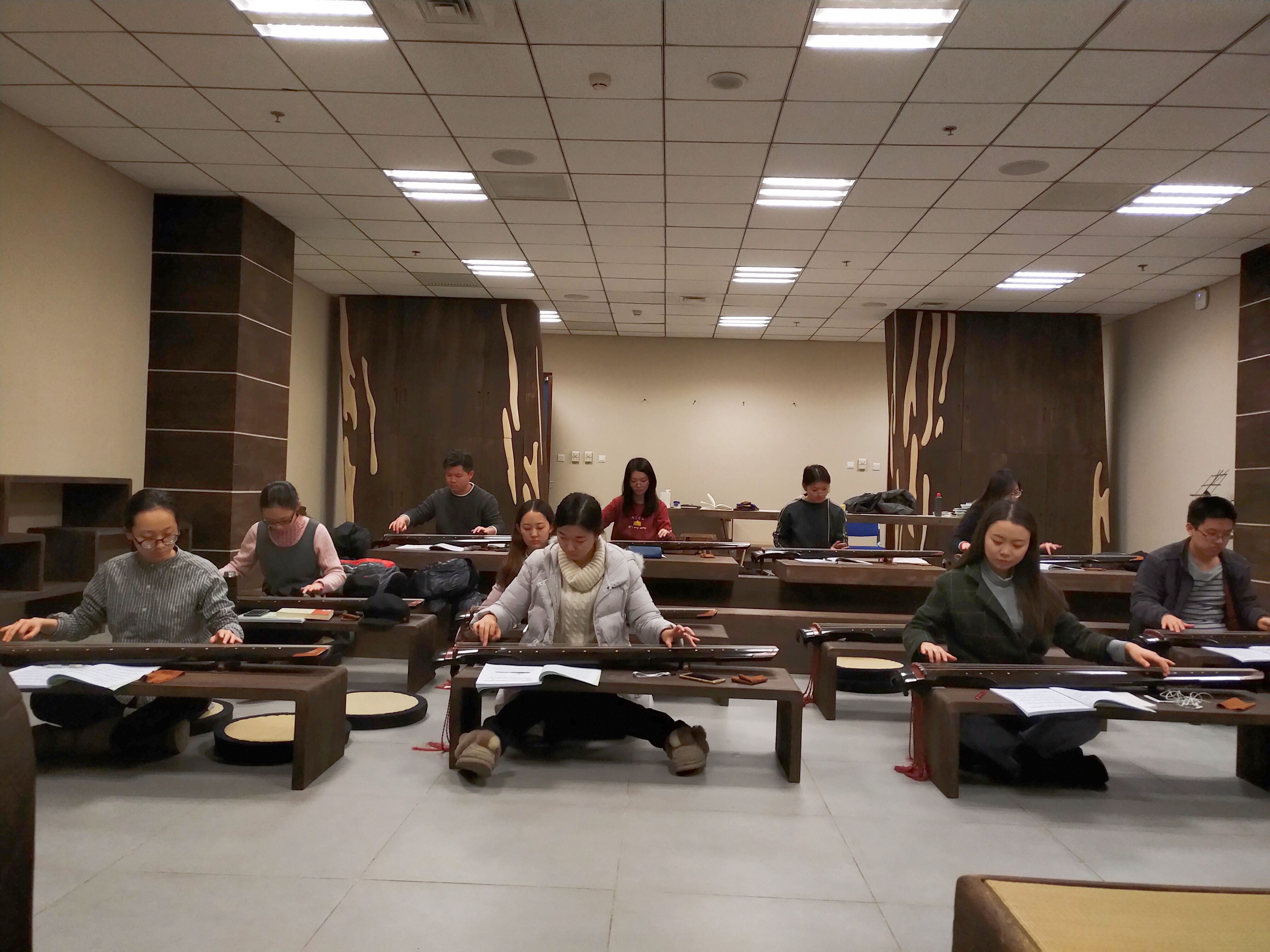 时光飞逝,一个学年的古琴课程就这样走向了尾声。从开课至今,古琴陪伴我度过了每一个周末和夜晚愉快的练琴时光。古色古香的古琴教室里,留下了我们的汗水和进步的足迹。刚开始学琴,有诸多的不适应。尤其是指法,光右手就有托、劈、抹、挑、勾、剔、打、摭等诸多花样,每一个动作都要力求精准,然而由于惯性,手指总是不听使唤。老师便不厌其烦地帮我纠正,使我慢慢得其要领。加入左手后的手忙脚乱、曲谱复杂之后的力不从心,都让我记忆犹新。在两位老师的循循善诱和殷勤指导下,我们乍窥门径,初步学会了《笑傲江湖》、《仙翁操》、《秋风词》、《良宵引》、《阳关三叠》五首曲子,甚至还能跟着自己的琴声摇头晃脑地哼上几句。这些小小的成就让我们觉得之前的付出都是值得的。那一个个跳动的音符,仿佛就是沟通我们和古人心灵的桥梁。比如《秋风词》,通过古琴课的学习,通过自己的弹奏和哼唱,诗歌的意境被重塑。弹着弹着,谱字上的字字句句都流动了起来,千年以后的我们与这首诗、与李白的心便贴得更近了。