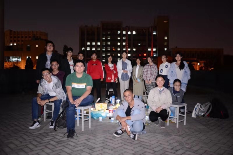 2018.9.24 全班同学和辅导员、班主任在国学馆天台吃月饼、赏月共度中秋。