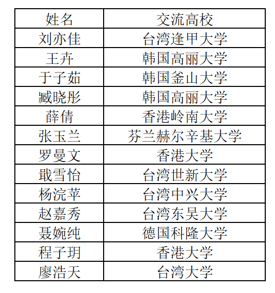 2016-2019学年春水堂 学生校际交流名单(据不完全统计)